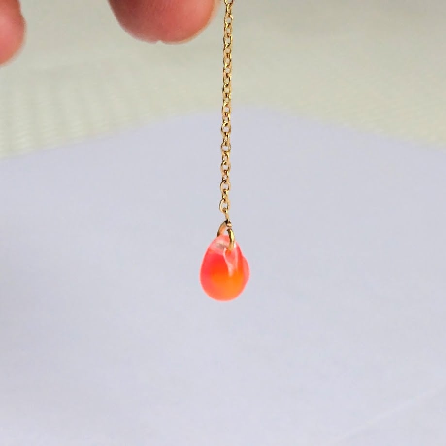 さらにこのピアスには秘密があって、太陽の光にかざしてから暗いところに行くと本物の線香花火の火花のように灯ります。